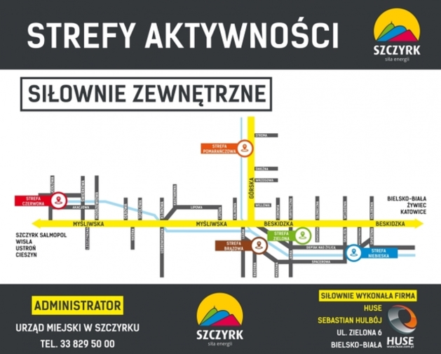 Dolna stacja kolejki mieści się przy ul. Myśliwskiej 45 (tel. 817 86 20), niedaleko przystanku PKS Szczyrk Kolejka. Wyciąg podzielony został na dwa odcinki: